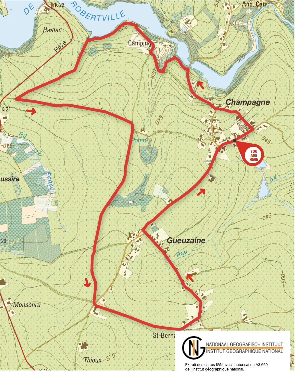Parcours varié, sur le tracé de 2 anciennes routes, agrémenté d’un sentier sur les berges du lac de Robertville